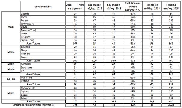 Niveau et évolution des consommations d’eau selon les immeubles Sécomile – La Madeleine