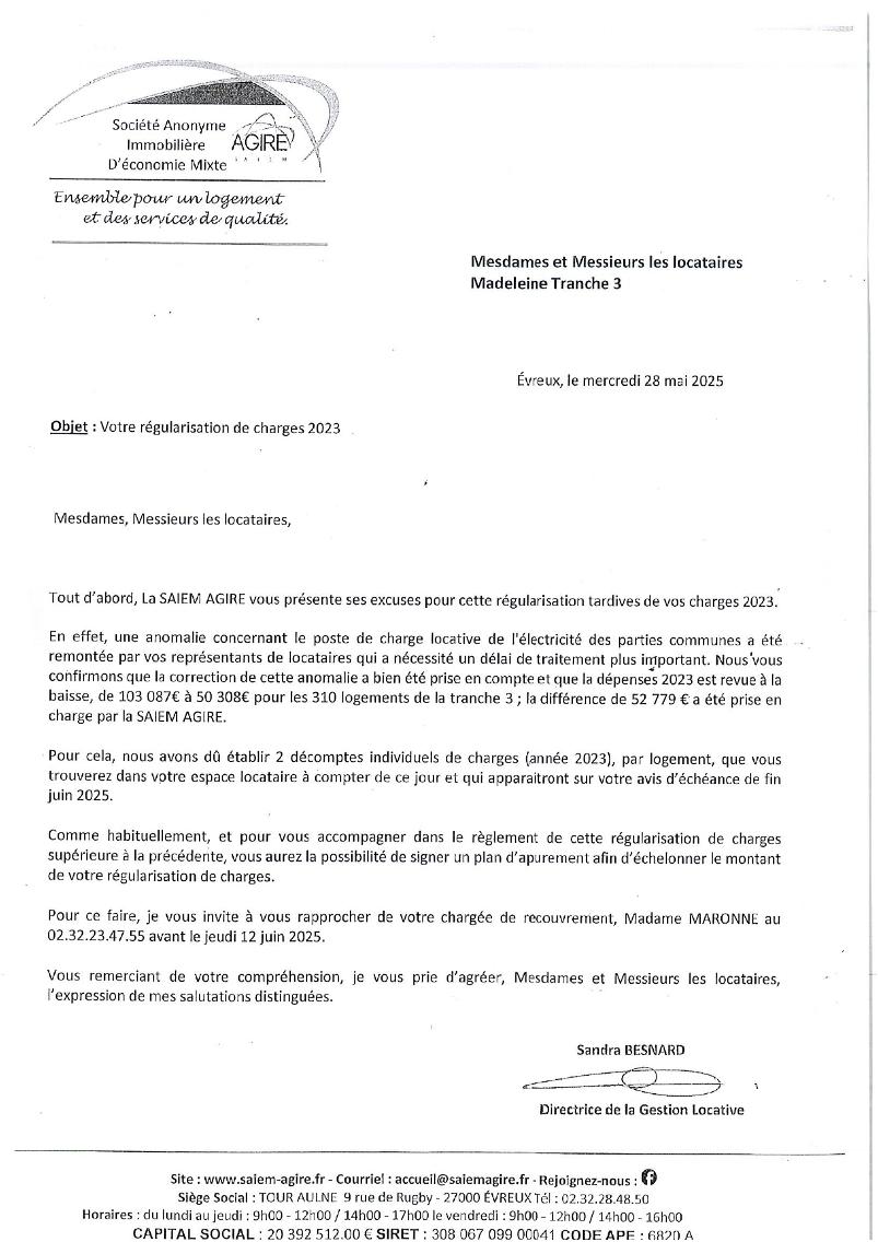 (cf. lettre de régularisation des charges de la SAIEM aux locataires) |